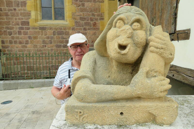 Op een mooie plein zagen we het oudste gebouw in Roanne…de toren uit de twaalfde eeuw. Deze was ooit deel van het kasteel. De Kerk Saint-Etienne, met de goud en roze stenen, is zeker de mooiste van de kerken in Roanne. Deze kerk werd gebouwd rond 1343 en meerdere malen verwoest door de geschiedenis heen. Het gebouw dat wij vandaag zagen dateert uit de late negentiende eeuw. Naast de kerk staat een oud middeleeuws huis. Het Huis van de Ambachten van Roanne.