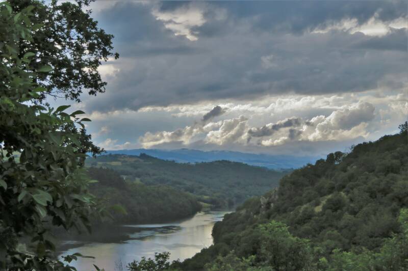 We hebben de kerk bekeken en daarna hebben we genietend een rondje rond de kerk gelopen, maar omdat de zon steeds meer achter de wolken verdween hebben we besloten om op nog een keer naar Roanne te gaan en zijn we naar de haven gereden. Een mooie plek om een keer langs het water te lopen en te genieten van alle bootjes die er liggen en het mooie uitzicht over de Loire. Maar we zagen de lucht zo dreigen dat we besloten de paar boodschappen te gaan doen die we nodig hadden. Op de terugreis naar de camping, onweerde het en kwam de regen met bakken naar beneden. De rest van de dag in de caravan zitten kleuren en geluisterd naar de regen die op het dak kletterde. Rond etenstijd scheen de zon weer en kon je weer buiten zitten, maar om een uur of acht begon de lucht weer donker te kleuren en ging het weer hard regenen.