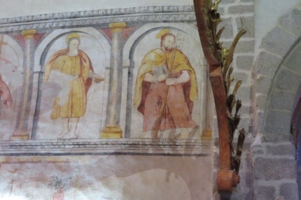 Vrijdag 2 Juni Prachtig zonnig weer en heerlijk de hele dag buiten zitten. In deze blog wil ik de foto's van de Romaanse kerk met prachtige gebrandschilderde ramen met jullie delen. Deze kerk is gebouwd tussen 1166 en 1225. In het voorportaal de kerk zagen we prachtige beelden staan en in de kerk werden we verrast door de vele mooie details en de muurschilderingen. Rond kijkend in deze kerk besef ik dat hier meer dan 100o jaar geleden ook mensen liepen. Met eigen zorg, vreugde en verdriet kwamen ze naar het huis van onze Heer. Juist in die oude kerken die altijd open staan, waar je naar binnen mag en waar je ziet waar God de eeuwen door voor mensen heeft betekent. Even stil zijn en de schoonheid van eeuwen in je laten stromen. Keer op keer maakt het me dankbaar en blij.