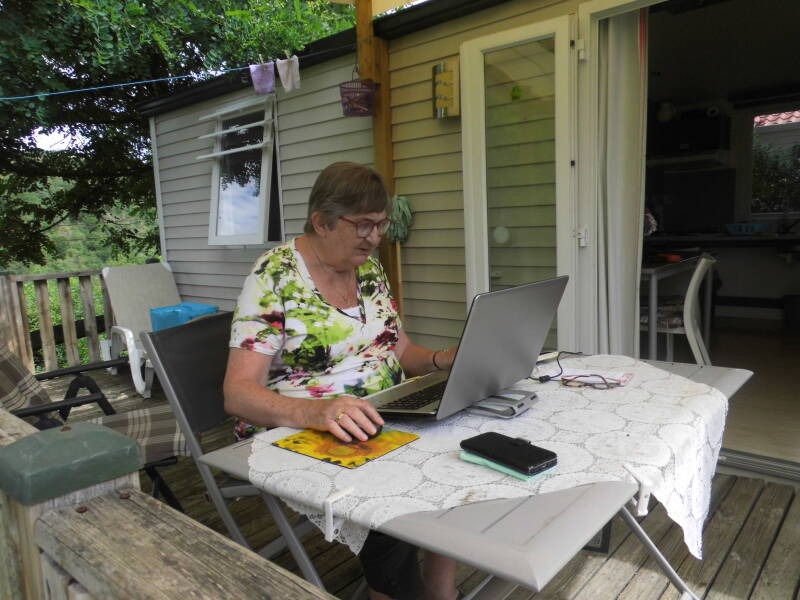 Woensdag 7 Juli 23 graden....Als ik opsta kijk ik gelijk naar buiten, even genieten van het prachtige uitzicht over het water en de lucht. Maar deze ochtend geen uitzicht, ik keek in een ondoordringbare witte wereld met op de voorgrond een waas van groen. Kortom de heuvels en de rivier de Loire waren verborgen door dikke lage wolken. Maar zoals het altijd gaat, de zon brandde haar gaatjes steeds groter werden tot dat de stralende blauwe lucht de overhand kreeg en witte wolken als een sieraad in de lucht zweefde. Henk en ik deden vandaag niets… nou ja niets; ik heb vanaf 11 uur tot half 3 zitten met de zon op mijn rug op het balkon zitten tellen en rekenen, schuiven met bedragen, weer opnieuw tellen en rekenen. Ik had een fout in de PGB jaarberekening gemaakt en moest opnieuw alles berekenen om het PGB budget kloppend te maken om de hulpen van Sandra te kunnen laten weten wat de uurlonen worden, nu de zorgindeling veranderd is. Dus even ik moest aan de arbeid om daarna weer heerlijk in het zonnetje te mogen genieten van niets hoeven. De dagen glijden voorbij en we merken dat we ons heerlijk mee laten drijven. We hebben het hier zo fijn.