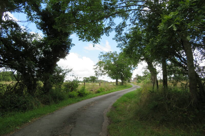 We wilde vandaag een dagje uit, maar er dreigde regen en Henk wilde eerst zijn boek uit lezen. We besloten om na het ontbijt en de koffie ergens in de buurt een eindje te gaan wandelen. Na het ontbijt, schrikken… Ik wilde mijn medicijnen in nemen en kwam tot de ontdekking dat Henk mijn ochtend medicatie had ingenomen. Tja afwachten maar of dat gevolgen zou hebben. Na het ontbijt, wat aan gerommeld en koffie gedronken. Henk voelde zich prima dus besloten in beweging te komen. Op internet gezocht waar dichtbij een mooie wandeling gemaakt kon worden. Ik las dat een paar km hiervandaan bij Cordelle een kasteel/hotel met een mooie omgeving was om te gaan wandelen. Henk trok zijn schoenen aan en voelde zich onevenwichtig. Maar hij wilde toch weg. Hij voelde zich verder goed zei hij. We reden naar Cordelle 6 km verderop, maar helaas Het kasteel/hotel met een grote mooie tuin eromheen was gesloten. We zijn er langs gereden. Langs een mooi smal weggetje met prachtige uitzichten over de heuvels en dalen kwamen we bij een bord…doodlopende weg. Daar hebben we de auto in het gras geparkeerd en zijn we daar een stukje wezen wandelen.