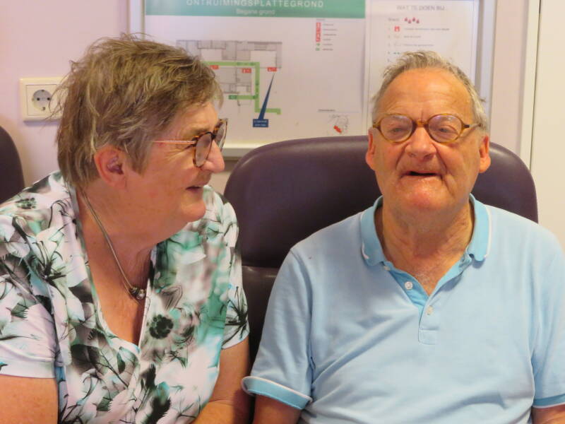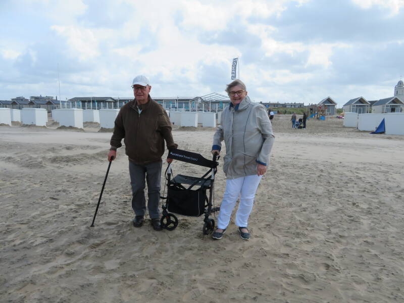 Ieder jaar doen we iets gezelligs op onze trouwdag. Vandaag zijn we naar het strand in Katwijk gereden. Er stond een stevige wind, die het zand over het strand blies. Het was fris, de thermometer gaf 18 graden aan. Grote witte golven rolde af en aan. Ik vind het zo heerlijk om de golven af en aan te zien rollen. Boven het water zeilde prachtige witte wolken in een helder blauwe lucht. Het lukte om met de rollator op het natte zand te lopen. Uitgewaaid en moe hebben we in een strandcafé onze trouwdag gevierd met koffie/thee en heerlijk appeltaart.