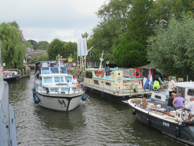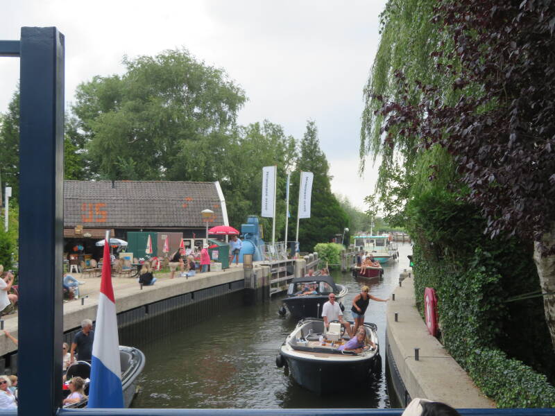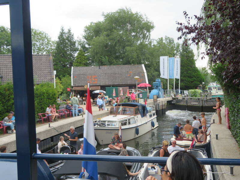 Het was druk op het water, we zagen talloze bootjes groot en klein varen. Bij de Sluis, tussen Loosdrechtse plassen en de Vecht, lag een file van bootjes en boten te wachten om de sluis in te kunnen. Er mogen maar 10 boten per keer in de sluis, dus me moet daar echt geduld hebben.