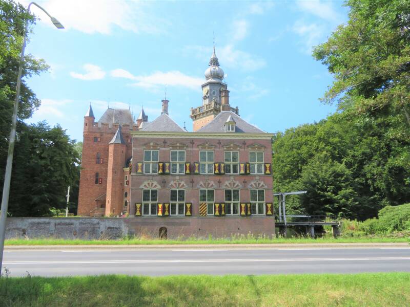 De vaartocht over de Vecht ging van Loosdrecht, Maarssen, Breukelen naar Nieuwersluis. Het was een prachtige tocht en ik heb mooie foto’s als blijvende heinnering gemaakt. Bij Nieuwersluis maakte ik een foto van het gebouw van de voormalige Pupillenschool. De kapitein vertelde dat daar vroeger jongens werden opgeleid voor het leger. Later werd het een gevangenis voor militairen en voor niet-erkende dienstweigeraars. Tegenwoordig staat op het terrein een vrouwengevangenis. Even voorbij kasteel Nijenrode is de boot gekeerd om via de zelfde weg terug te varen. Ik las om de site dat kasteel Nijenrode oorspronkelijk gebouwd is in 1275. Nu anno 2021 is het al jaren de Nyenrode Business Universiteit.