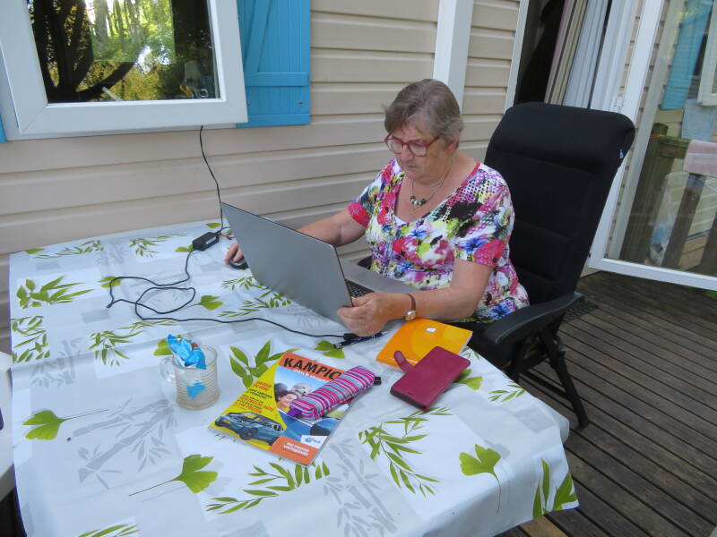 Weer thuis ben moest ik de vakantie even vergeten en aan het werk als secretaresse van mijn dochter. De betalingen van haar hulp moest worden geregeld. Gelukkig was de camping eigenares bereid alle documenten af te drukken en hebben we een goede wifiverbinding om alles naar de SVB te sturen en kon ik buiten op het terras de administratie verwerken.