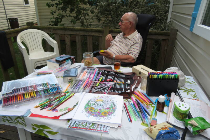 Zondag 5 September … Rustdag ... Ongekend…ik werd vanmorgen om 10 voor negen wakker. De zon scheen, de deur heb ik gelijk open gezet want het was heerlijk weer. Na ons gebruikelijke ochtend ritueel, buiten de tafel gedekt, een eitje gekookt, de pillen uitgezet en koffie/ thee gezet. Heerlijk in het zonnetje aan de ontbijttafel. De hele dag buiten…niets doen… alleen dingen doen die je leuk vind, waar je niet over na hoeft te denken.