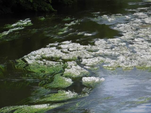 Nog nooit gezien ... Prachtig groene slierten in het water die met hun kopje boven het water bloeiden