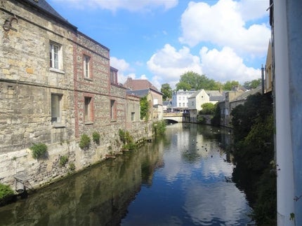 Bij het opstaan was het eerste wat ik zag…. de zon. Heerlijk, want we vandaag wilden we naar Honfleur, volgens de informatie een oud mooie stadje aan Bai de la Seine. Volgens de routeplanner was het vanaf Yport 44 km. Toen Henk het in de auto intikte zei zijn routeplanner iets heel anders nl. 115 km. Kijkend op de kaart bleek dat we helemaal omgeleid werden. Routeplanner uit en op de kaart zijn we gaan rijden. Nou dat viel tegen want op een of andere manier koos ik de verkeerde weggetjes en via een prachtige route van bijna 2 uur door het midden van Normandie waren we nog steeds niet in Honfleur. We besloten het maar los te laten, toen we de borden Harfleur zagen. Harfleur is een ook een aardig oud stadje in het hart van Normandië . Grenzend aan Le Havre, ligt het aan de rechteroever van de Seine.