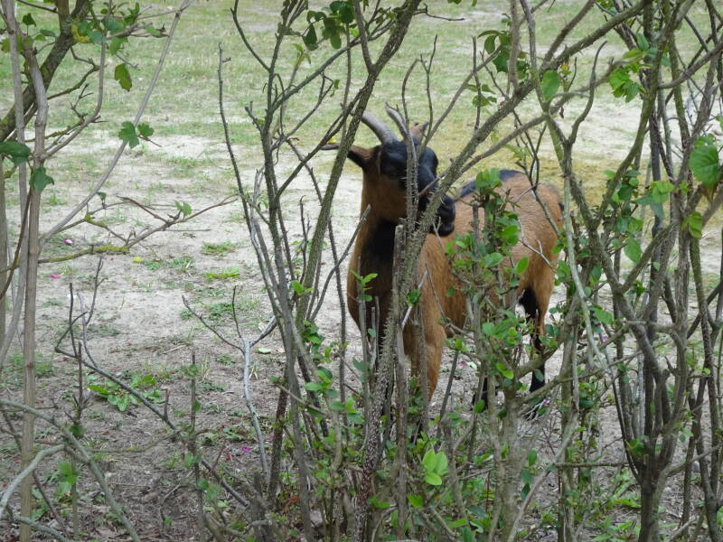 Was het gisteren een prachtige zonovergoten dag, vandaag was de zon op vakantie en liet ze een grijze lucht achter. De ochtend begon fris. We hebben lekker lang lopen luieren, laat gegeten en pas tegen elf uur zijn we onder de douche gegaan. Tegen 12 uur hebben we koffie/ thee gedronken en tegen half 1 zijn we in de auto gestapt met als bestemming Berck -Plage. Op weg naar de uitgang zagen we op de camping een stel geitjes rondlopen en heerlijk van het gras en de bomen hun honger probeerden te stillen