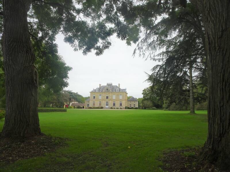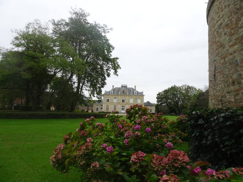 Op de terug weg naar de caravan hebben we bij les Jardins du Chateau d’Authie onze auto geparkeerd. Dit chateau is gebouwd in 1852 op de plaats van een 16e-eeuws herenhuis door de voorouders van de huidige eigenaren. Deze plaats is sinds het begin van de 14e eeuw in handen van dezelfde familie. Het chateau heeft een Engels park en Franse tuin in een voormalige moestuin en is omsloten door krijtmuren. De bijgebouwen stammen uit 17e en 18e eeuw. Het park was geopend en we konden de tuin in lopen. Op ons gemak hebben we het park door gewandeld, er was verder niemand. Ondanks dat de zon er niet scheen was het in de tuin heerlijk.