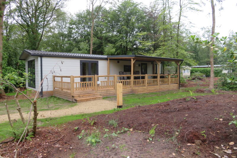 Aangekomen op camping 't Hout in Bakkeveen overtrof de stacaravan onze verwachtingen, een splinternieuwe caravan van 50m2 mooi gelegen in een open bos, met een ruime kamer, drie slaapkamers en een fijne badkamer en een mooi uitzicht. In de slaapkamers staan heerlijke boxspring bedden.